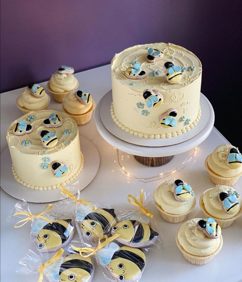 Яркий аппетитный тортик в тему пчелиной пасеки. Дополнительно вы можете заказать прянички и капкейки с этой темой - получится настоящий сладкий стол!