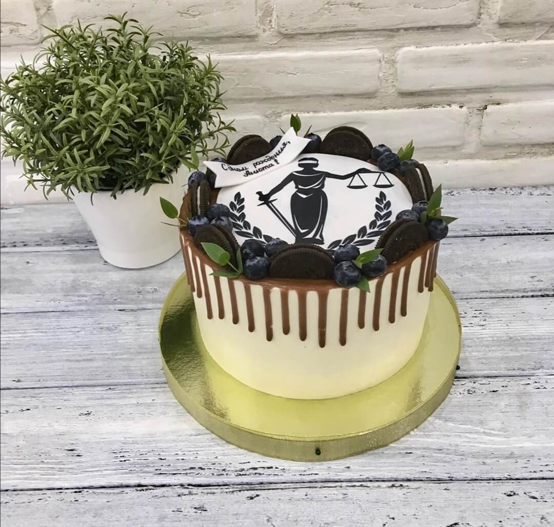 Богиня правосудия и порядка отлично подойдет в качестве оформления поздравительного тортика для юристов и судей